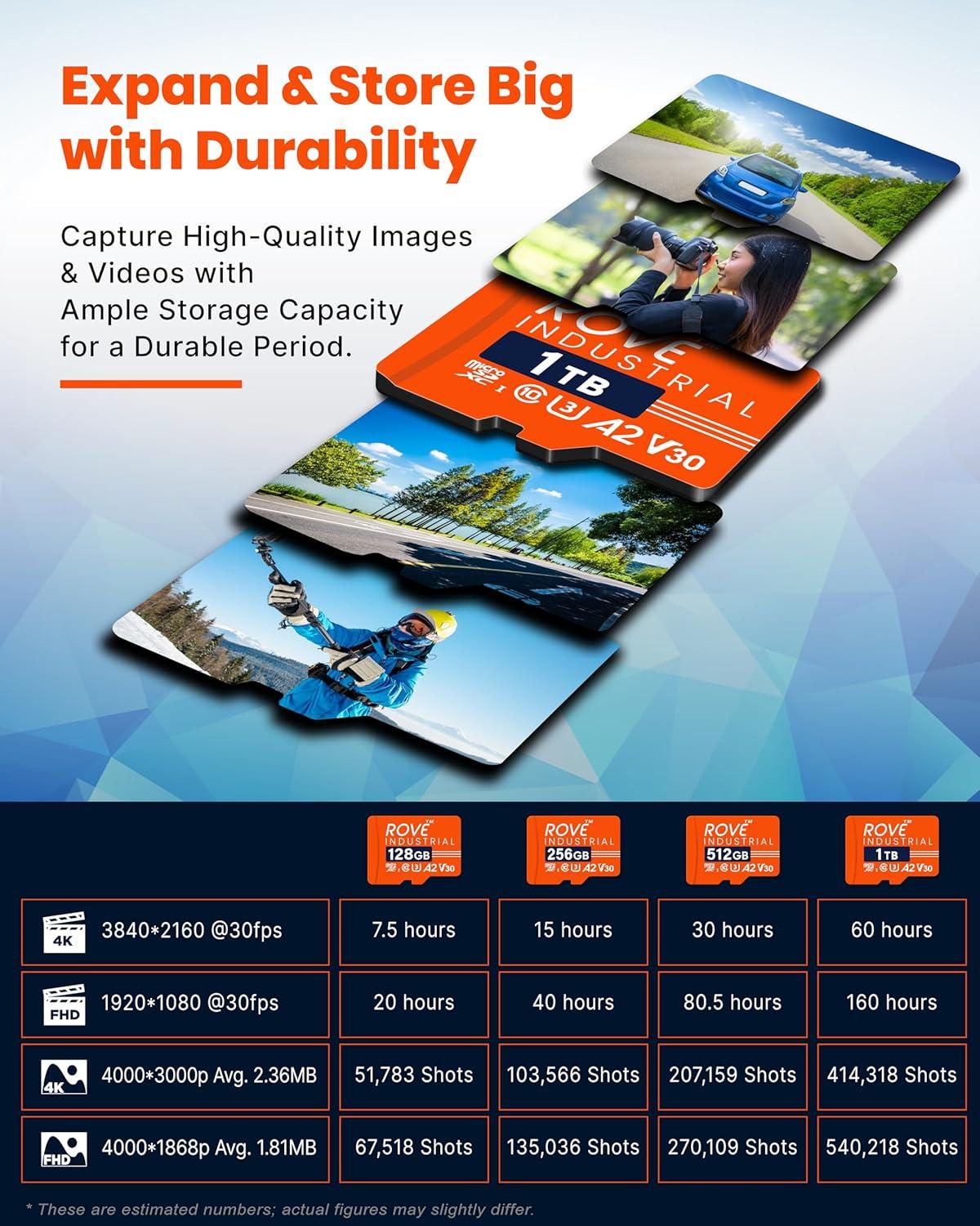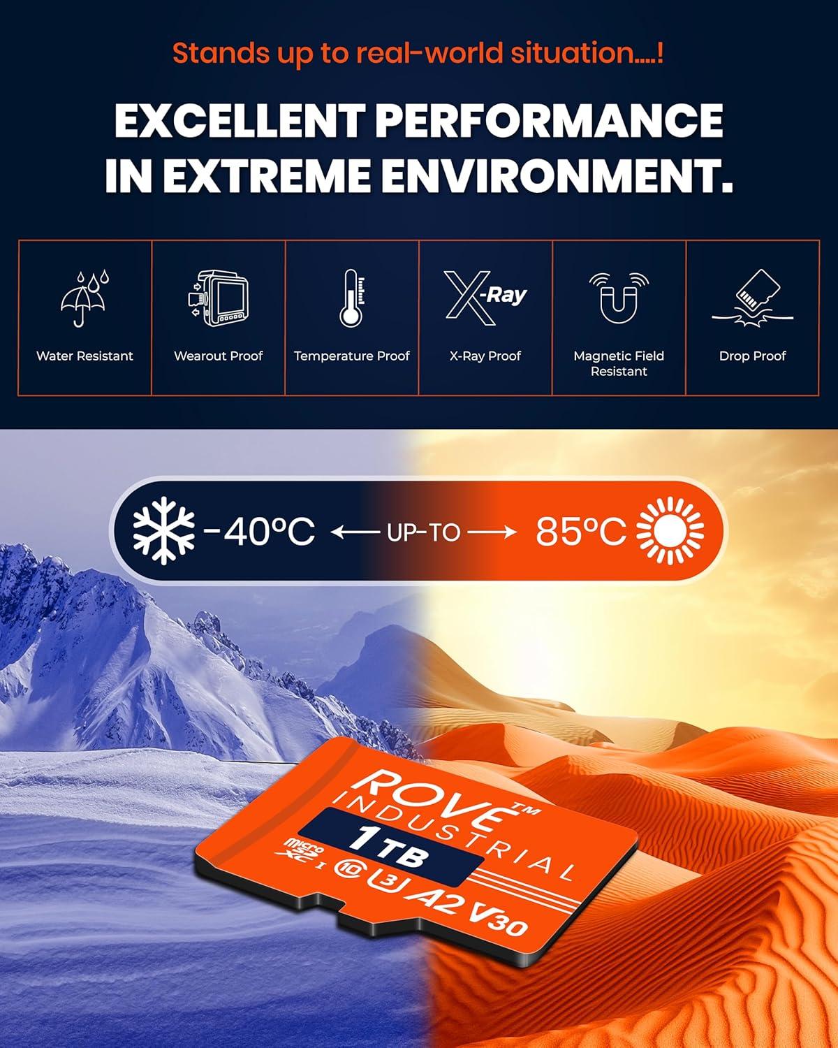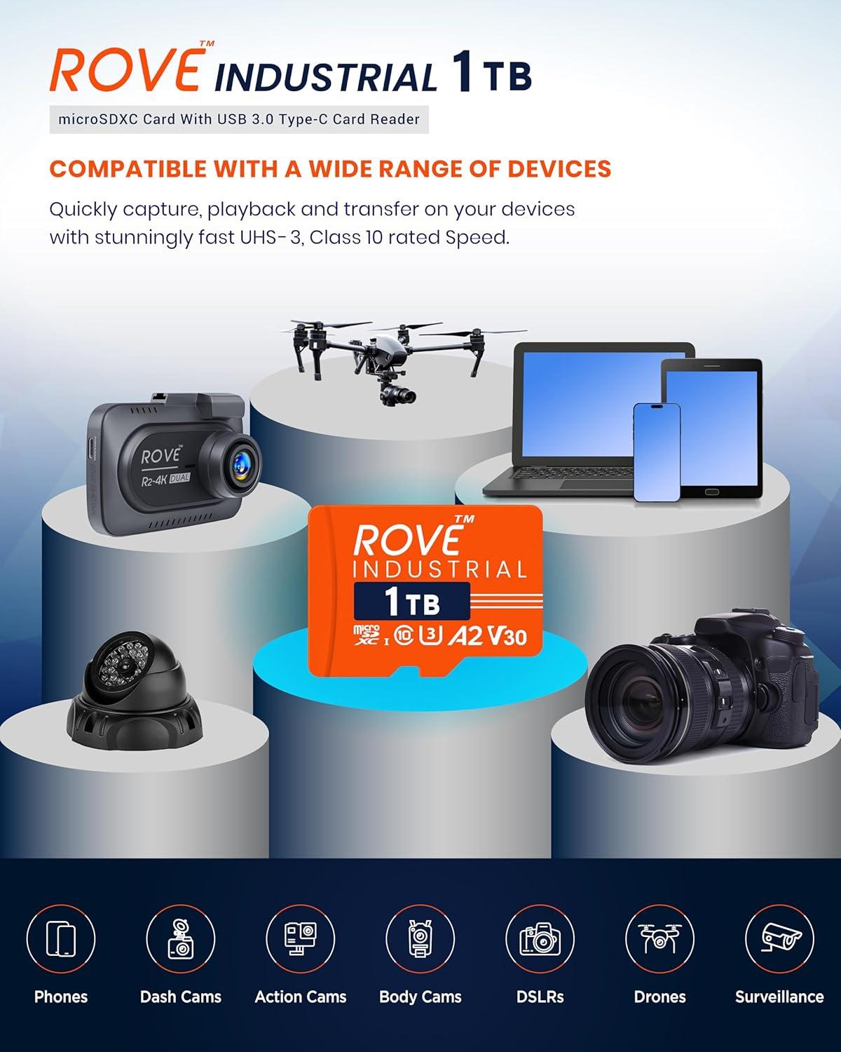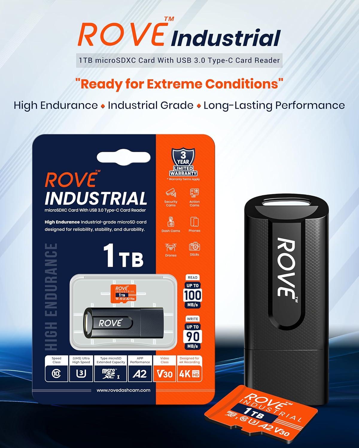 CARD READER INCLUDED: The ROVE Industrial 512GB microSD card comes with high-speed proprietary technology USB 3.0 Type C card reader.