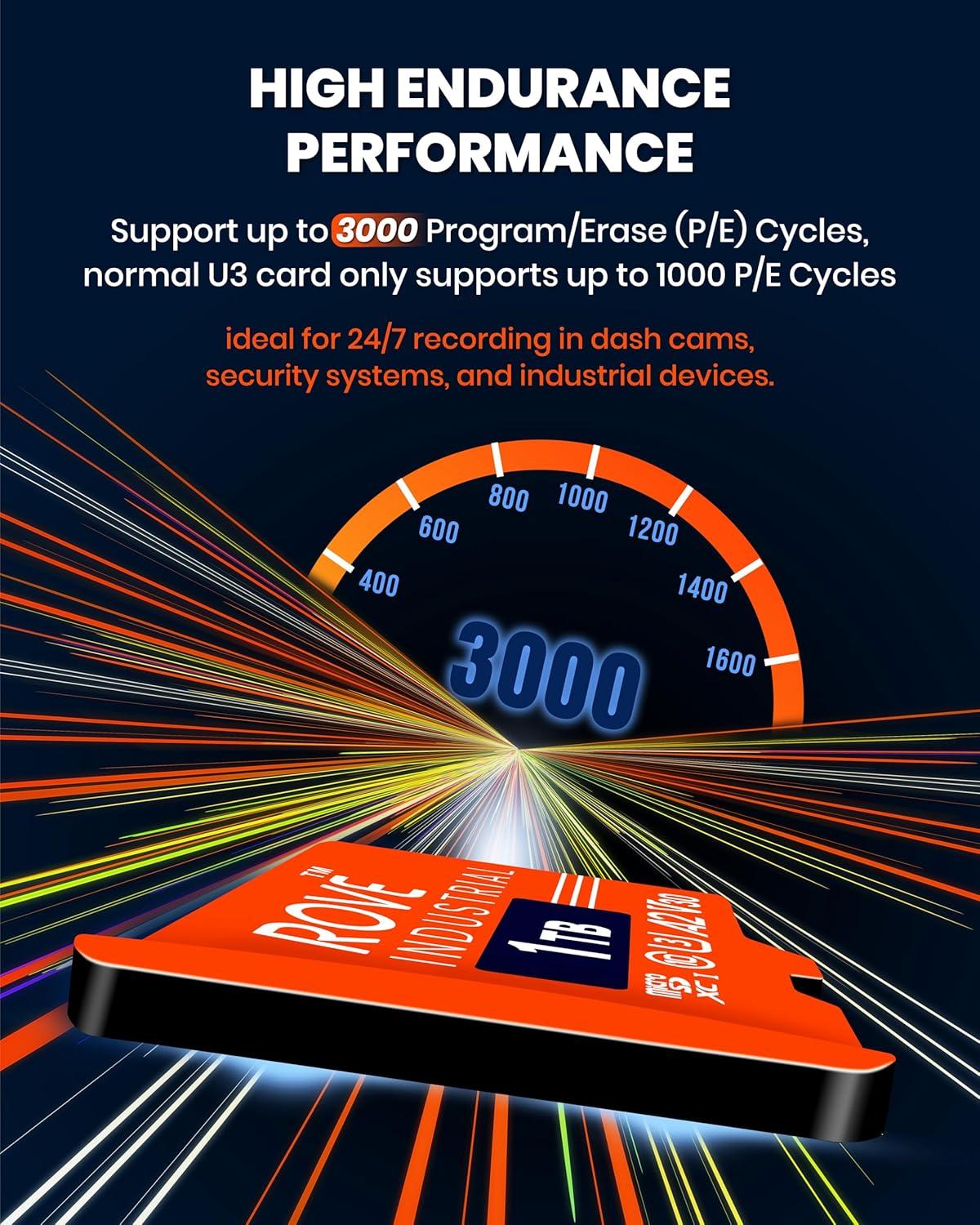 HIGH ENDURANCE PERFORMANCE: Rated for 3000 P/E cycles — ideal for 24/7 recording in dash cams, security systems, and industrial devices.