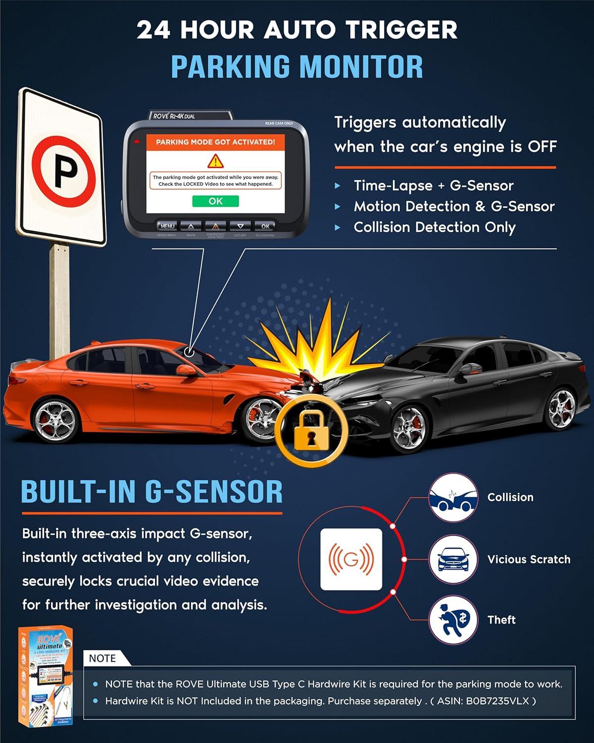 ROVE R2-4K DUAL Dash Cam Front and Rear, STARVIS 2 Sensor, FREE 128GB Card Included, 5G WiFi – up to 20MB/s Fastest Download Speed with App, 4K 2160P/FHD Dash Camera for Cars, 3″ IPS, 24H Parking Mode