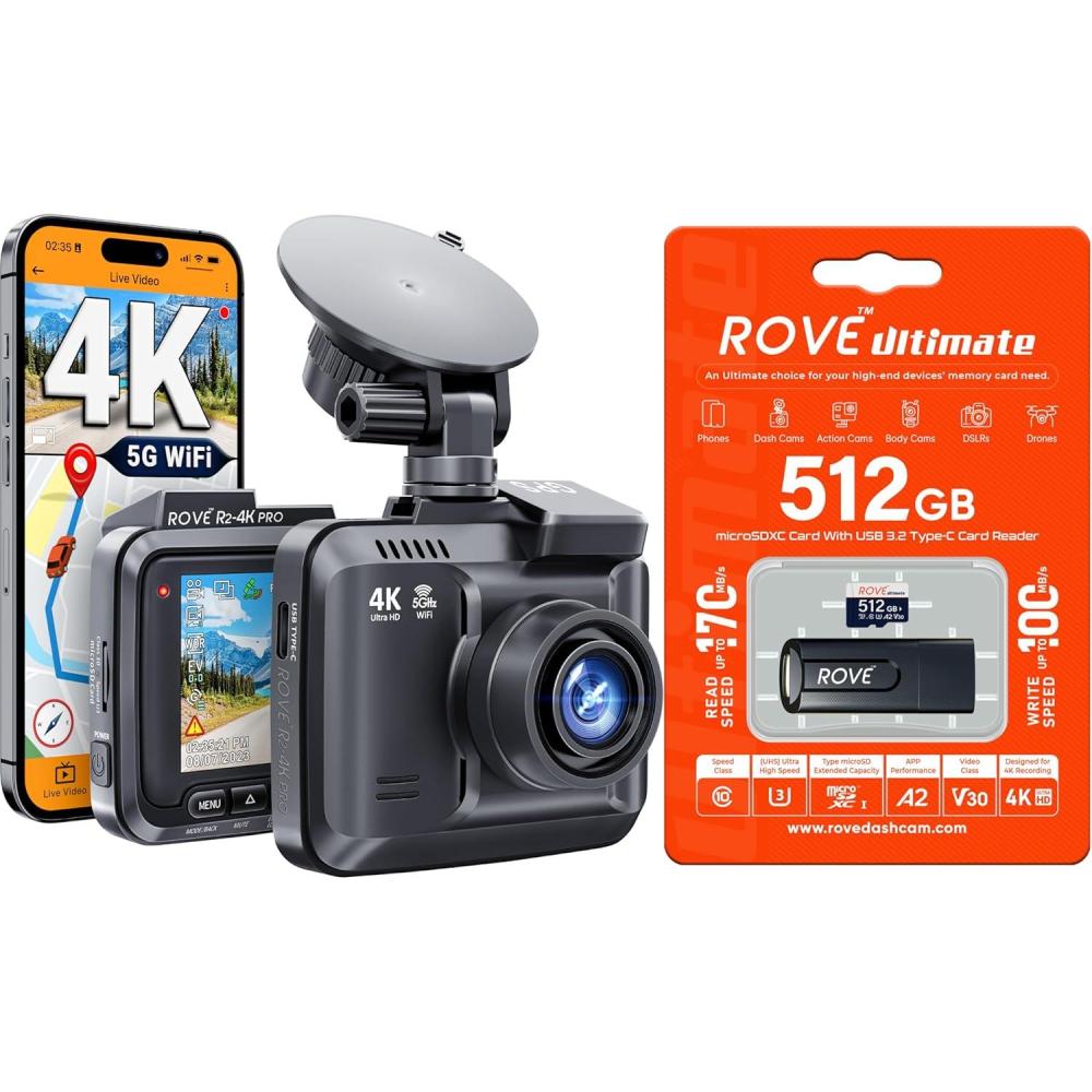 ROVE R2-4K PRO Dash Cam | 512GB Micro SD Card